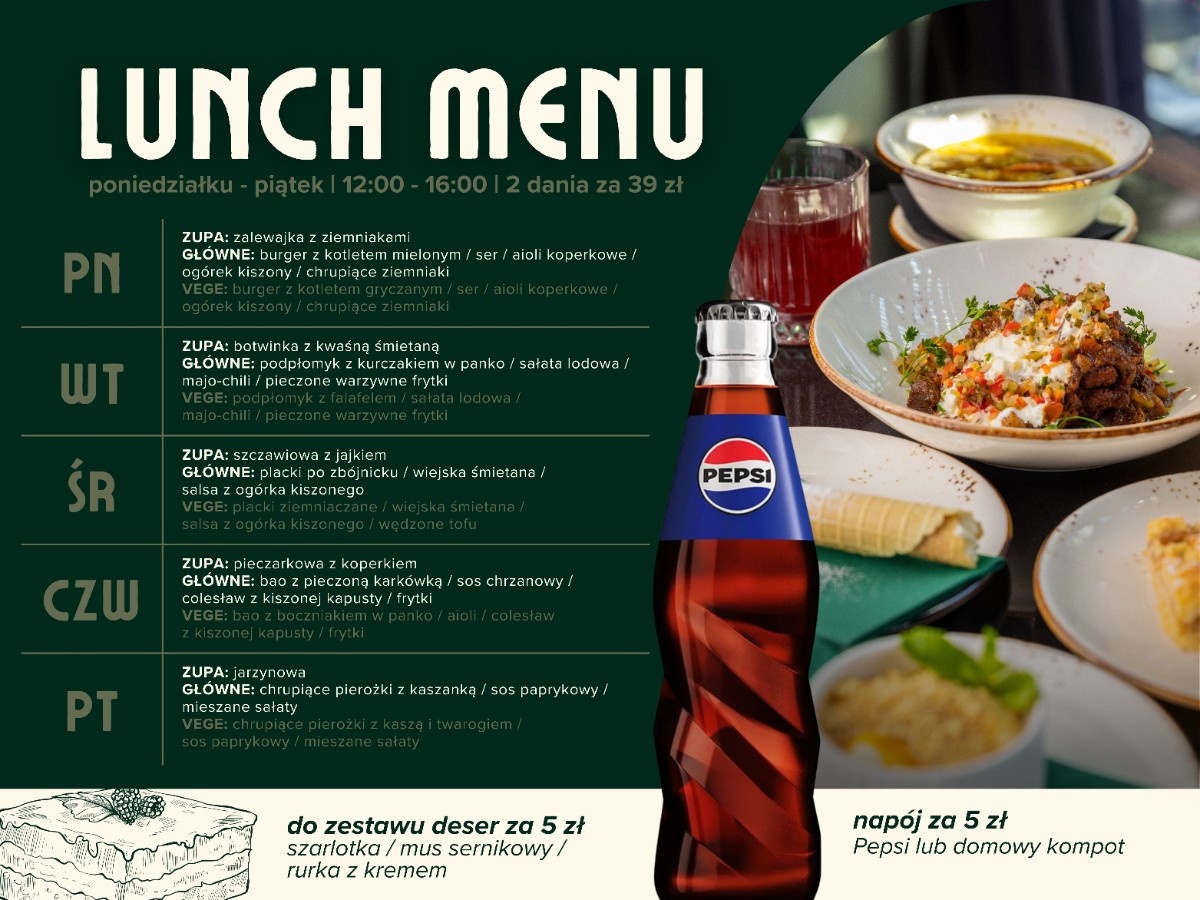 “Concept food&wine” to wykwintna kuchnia w styl “comfort food”, której niepowtarzalne smaki i aromatyczne zapachy zabiorą Państwa w pełną nostalgii podróż do beztroskich czasów rodzinnych spotkań. To miejsce, w którym tradycja miesza się ze współczesnością za sprawą Szefa Kuchni, Bartłomieja Trojanowskiego, dzięki któremu posiłek zmienia się